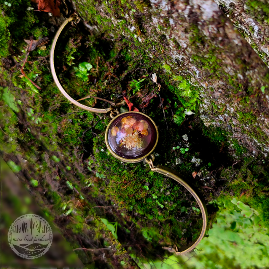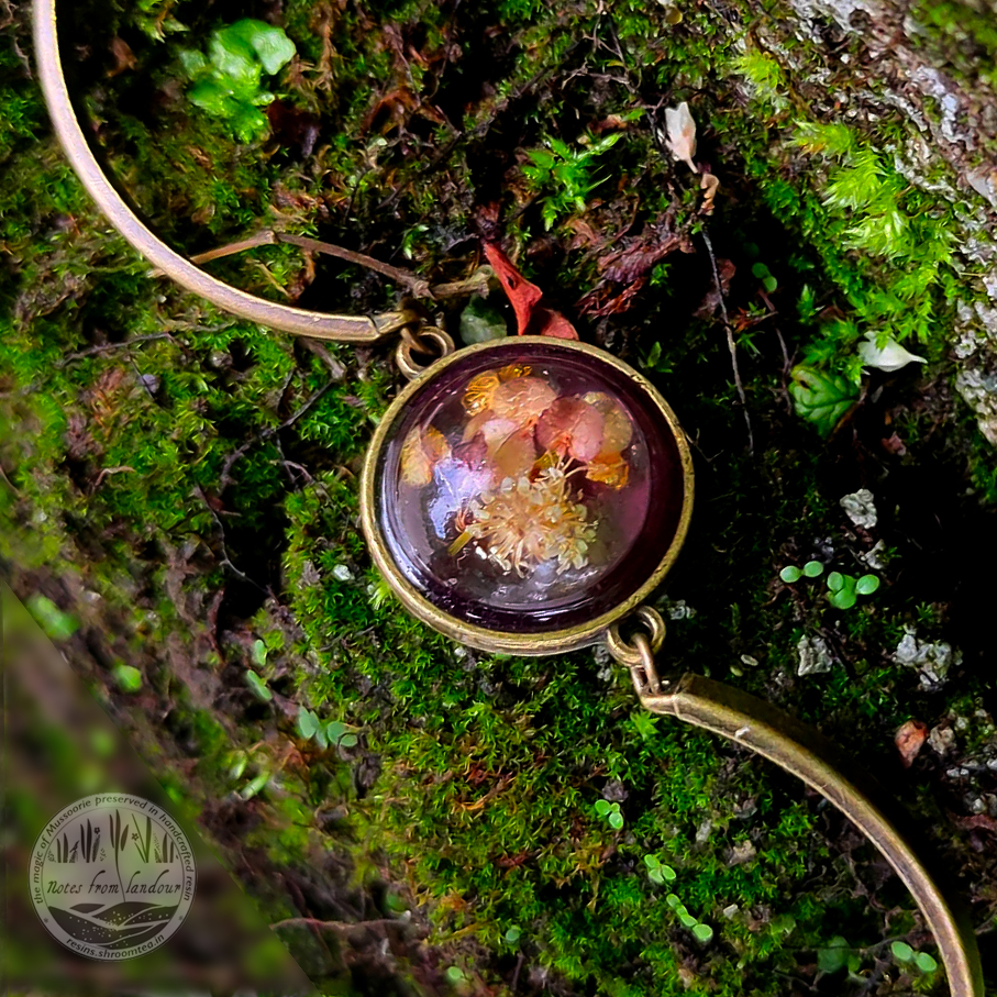 A Sheep/Mountain Sorrel and Everlasting in a 2 cm dome on this metal bracelet