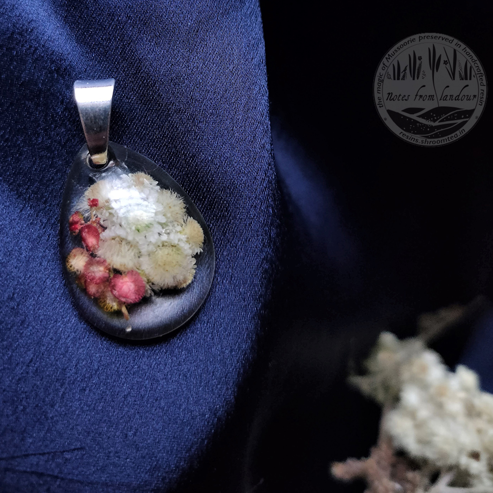 Clear Teardrop Pendant with Sorrel and Everlasting FLowers quantity