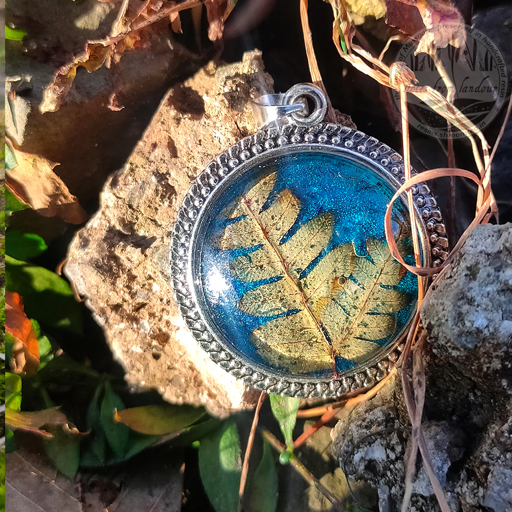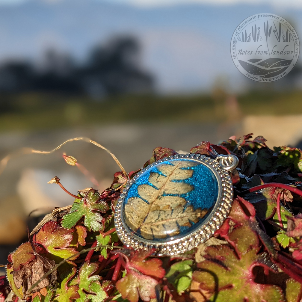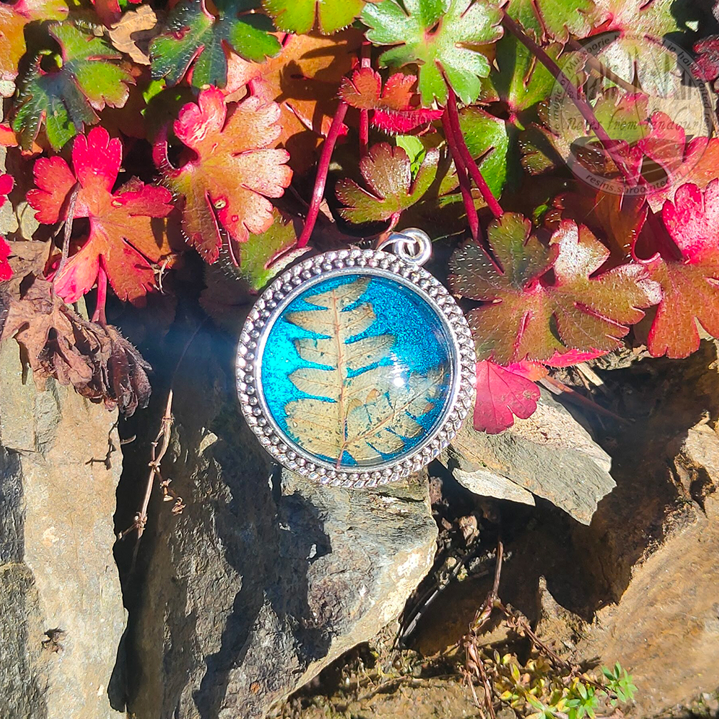 Fern in Metallic Blue Pendant